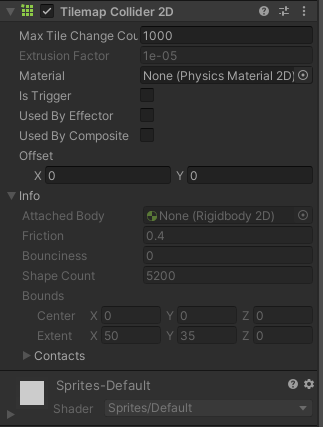 처음에 만들었던 tilemap에, tilemap collider2d 컴포넌트를 추가해준다.